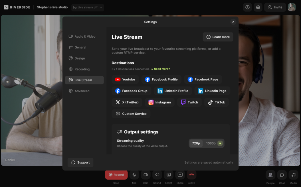 | Riverside | Live streaming tool that can easily stream to other platforms |