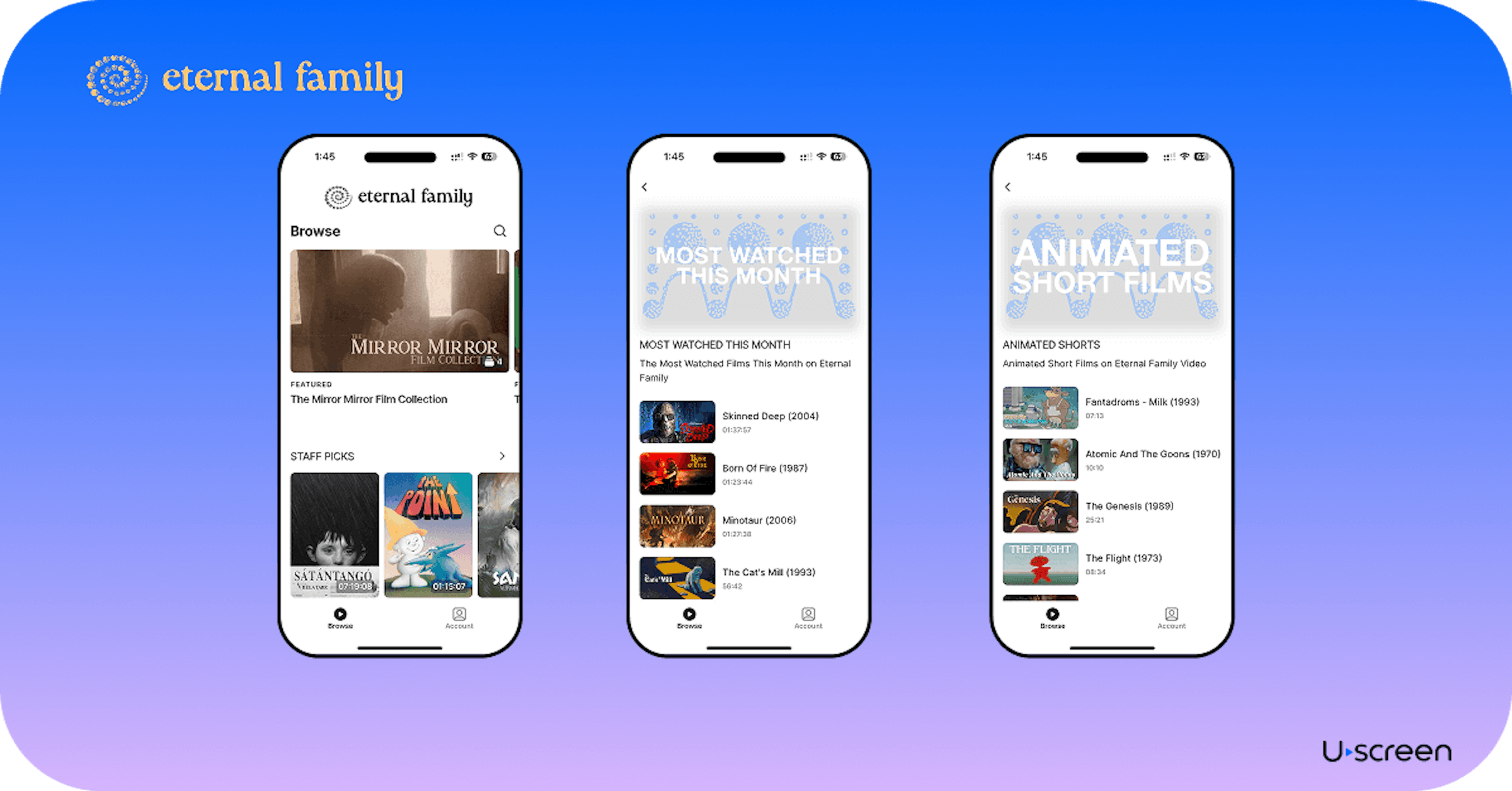 Eternal Family took their vision of feeling like the virtual equivalent of a walk-in video store filled with hard-to-find hidden gems, and ran with it on Uscreen. Launching a range of TV apps was pivotal in legitimizing their business when it came to collaborating with licensing partners and providing the cinematic experience their audience craved.