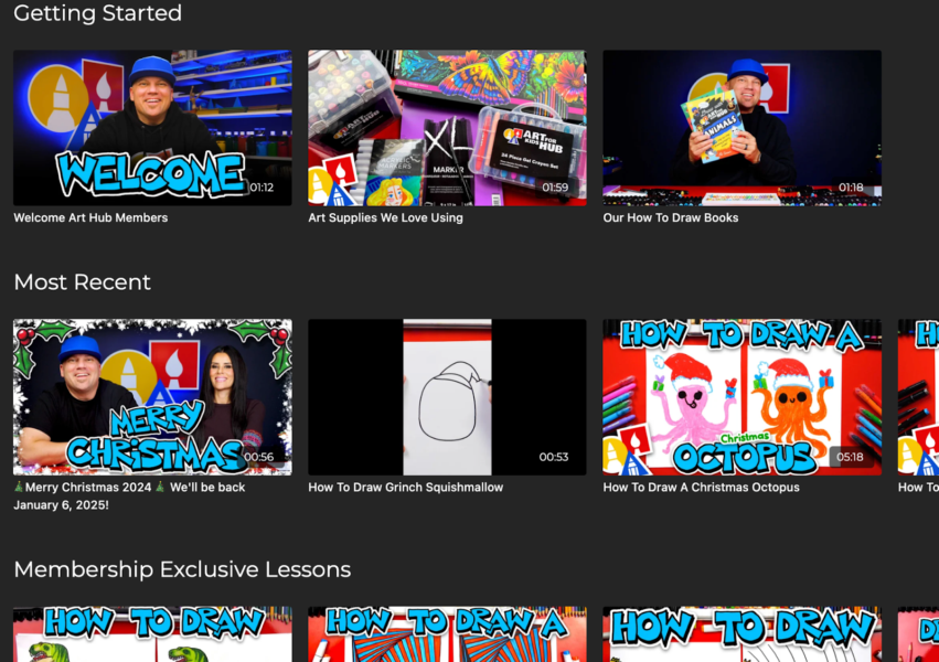 Art for Kids Hub is a YouTube channel that shares videos of art lesson projects for kids. With nearly 9 million subscribers, the channel is hugely successful, but the creators expanded to a membership website of the same name using Uscreen to provide better service and generate more stable revenue.