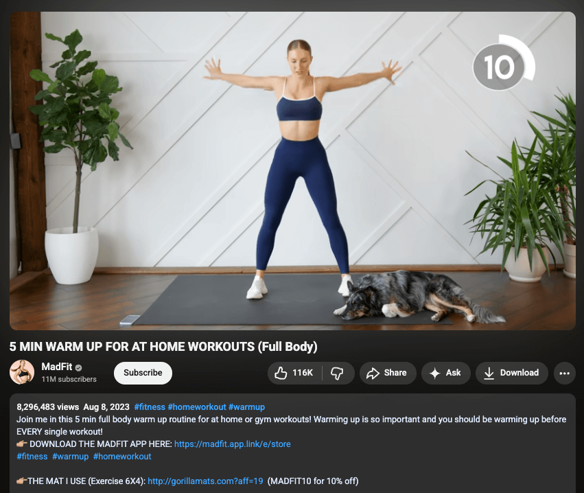 For example, for a fitness brand like MadFit, a 5-minute full-body warm-up works because it solves a real problem quickly. Instead of telling people to “warm up properly,” it gives them a short, follow-along routine that fits easily into home or gym workouts, with no equipment or guesswork.