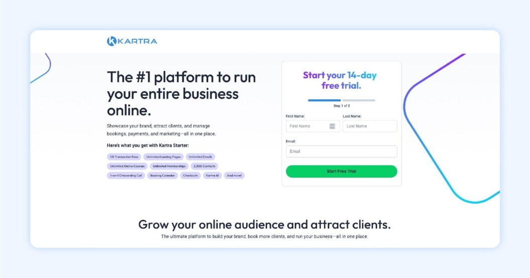 • Feature-rich platform: It includes a website builder, landing pages, sales funnels, email marketing, live streaming, and apps.